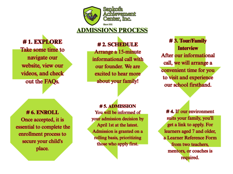 Background Statement: The Sankofa Achievement Center, Inc. was established and founded as a 501(c)(3) organization in 2011, our nonprofit organization is dedicated to empowering youth from low socioeconomic backgrounds to overcome obstacles and prepare for life. With over a decade of academic success stories generated through our after-school programs and summer camps, we have transitioned into a fully operational primary school. By instilling the wisdom of our ancestors and igniting a passion for excellence, Sankofa has established itself as a beacon in the community, embodying the adage that it takes a village to raise a child.
